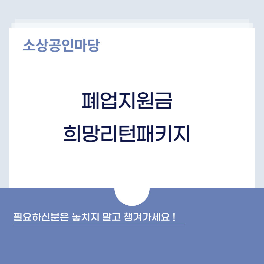 정부는 폐업 후 재창업 또는 전직을 희망하는 소상공인을 위해 ‘희망리턴패키지’라는 프로그램도 운영합니다.