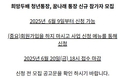 신청 자격이 된다면 반드시 도전해보시길 권장드리며, 신청 마감일은 2025년 6월 20일이니 절대 놓치지 마세요!