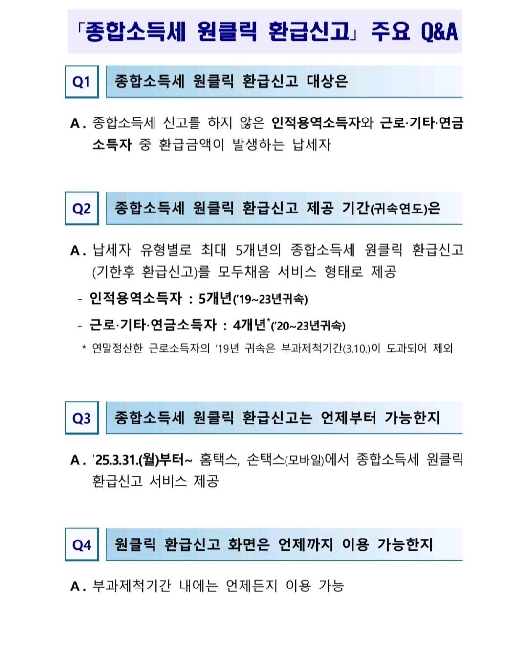 특히 국세청이 제공하는 원클릭 환급신고 시스템을 활용하면 복잡한 계산 없이 환급까지 간편하게 받을 수 있죠.